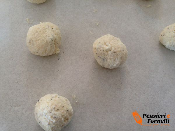 Facciamo delle palline e passiamaole in un po’ d’uovo sbattuto.