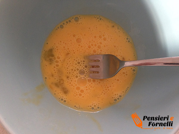 Sbattiamo le uova in una ciotola capiente abbastanza da poter contenere la fetta di pane.