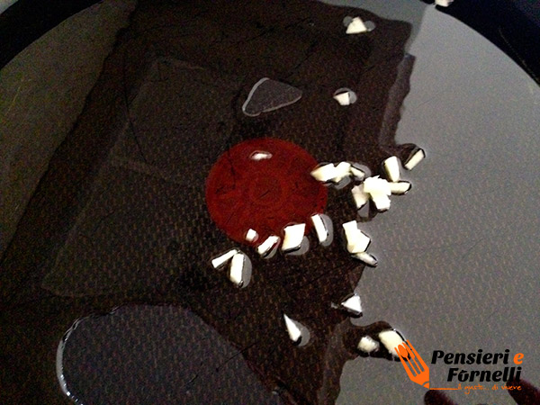 Quando l’aglio sarà leggermente dorato, aggiungiamo i broccoli, saliamoli, abbassiamo il fuoco al minimo, copriamoli con un coperchio.