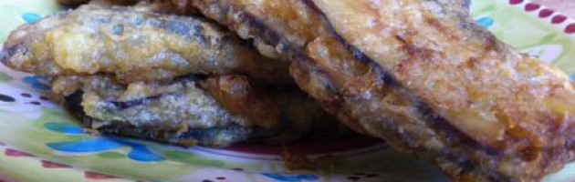 Tagliamole longitudinali e spessore mezzo centimetro e friggiamole in abbondante olio d’oliva bollente (non olio di semi, data la tendenza ad assorbire)
