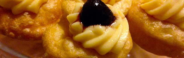 Lo so che ancora non è Marzo, ma l’altra sera mi è venuta una voglia matta (eheh). E, siccome qui se non è san Giuseppe le zeppole non si trovano, ho deciso di prepararmele da sola. E, dal momento che, con il mio blog, non mi sento mai sola, le voglio condividere con voi. Fatele ora, o aspettate Marzo, io intanto le posto. L’impasto è una pasta choux, dal bilanciamento leggermente differente, che poi va fritto. Per la crema pasticcera ho usato quella all’acqua, di cui vi metto gli ingredienti. Risultato divino. Qualche amarena ed il gioco è fatto, vediamo come fare.